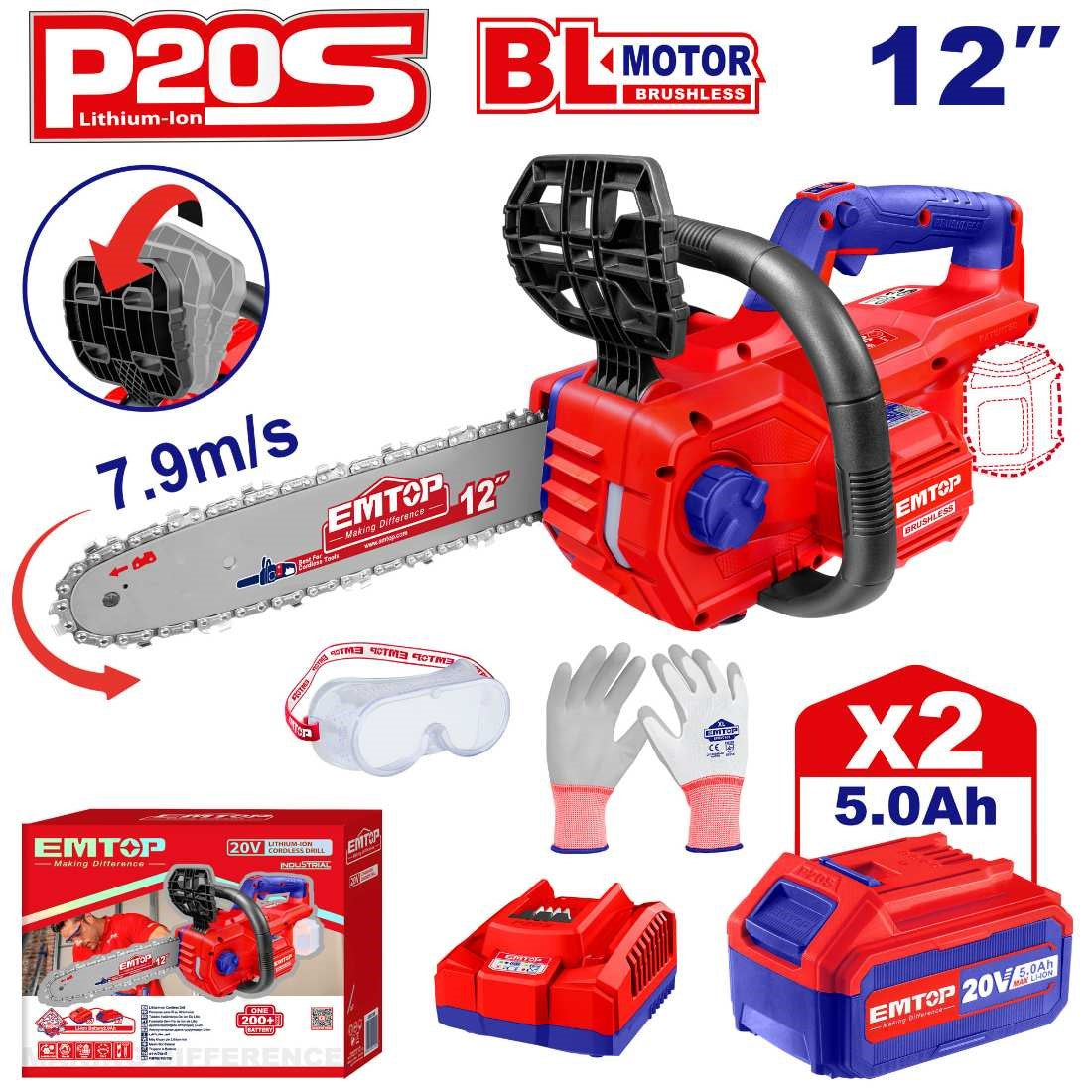 منشار سلسة 20 فولت 12 مع الملحقات 2 بطارية